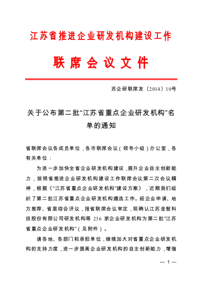 2014年在江蘇省推進企業研發機構建設工作聯席會議辦公室公布的“第二批江蘇省重點企業研發機構名單”中,吳中醫藥憑借出色的藥物研發能力榜上有名。