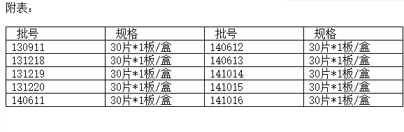 本著對患者用藥安全有效高度負責的態度,企業對2013年5月以后生產的銀杏葉片進行梳理,至2014年10月16日(2014年10月16日后至今未生產銀杏葉片)共計生產銀杏葉片10批(見附表)。為防止產生質量風險,公司決定對各銷售終端、各批號進行逐一核實,對市場還有可能存在有效期內的全部銀杏葉片,依據《藥品召回管理辦法》的要求,實施主動召回,進行風險評估,并將排查情況在公司網站及時更新。