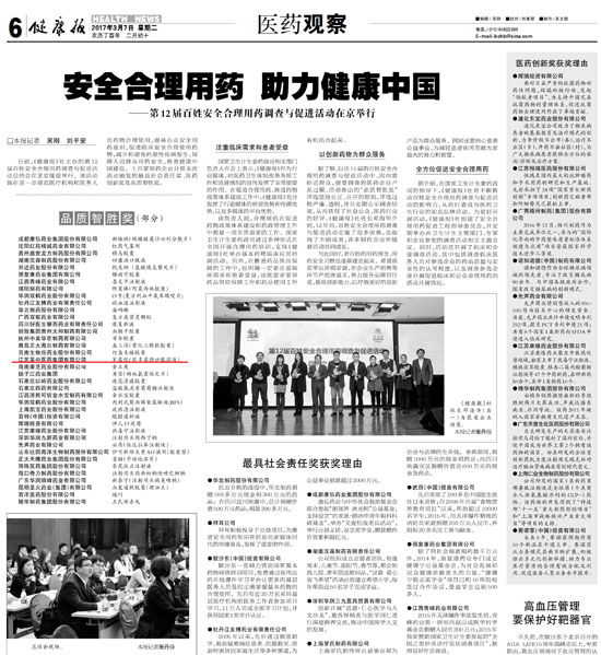 日前,《健康報(bào)》社主辦的第十二屆百姓安全合理用藥調(diào)查活動(dòng)中,江蘇吳中醫(yī)藥集團(tuán)的"芙露飲"匹多莫德口服溶液獲得“品質(zhì)致勝獎(jiǎng)”,最受臨床信賴品牌。該活動(dòng)旨在進(jìn)一步規(guī)范醫(yī)療機(jī)構(gòu)和醫(yī)務(wù)人員藥物合理使用,提高公眾安全用藥意識(shí)。