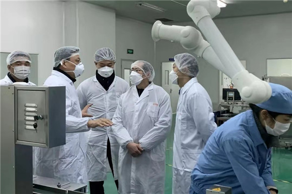 1月28日上午,江蘇省藥監局蘇州檢查分局局長楊文剛及相關領導到工廠進行現場檢查,對藥品生產質量管理及捐贈藥品流向管理做了指導,要求我們企業保證產量的同時,嚴把質量關,要做合格放心的產品。蘇州市工信局、發改委等部門積極與公司對接,了解企業復產存在的困難與問題,努力予以協調保障,支持企業擴大產能、保障市場供應。